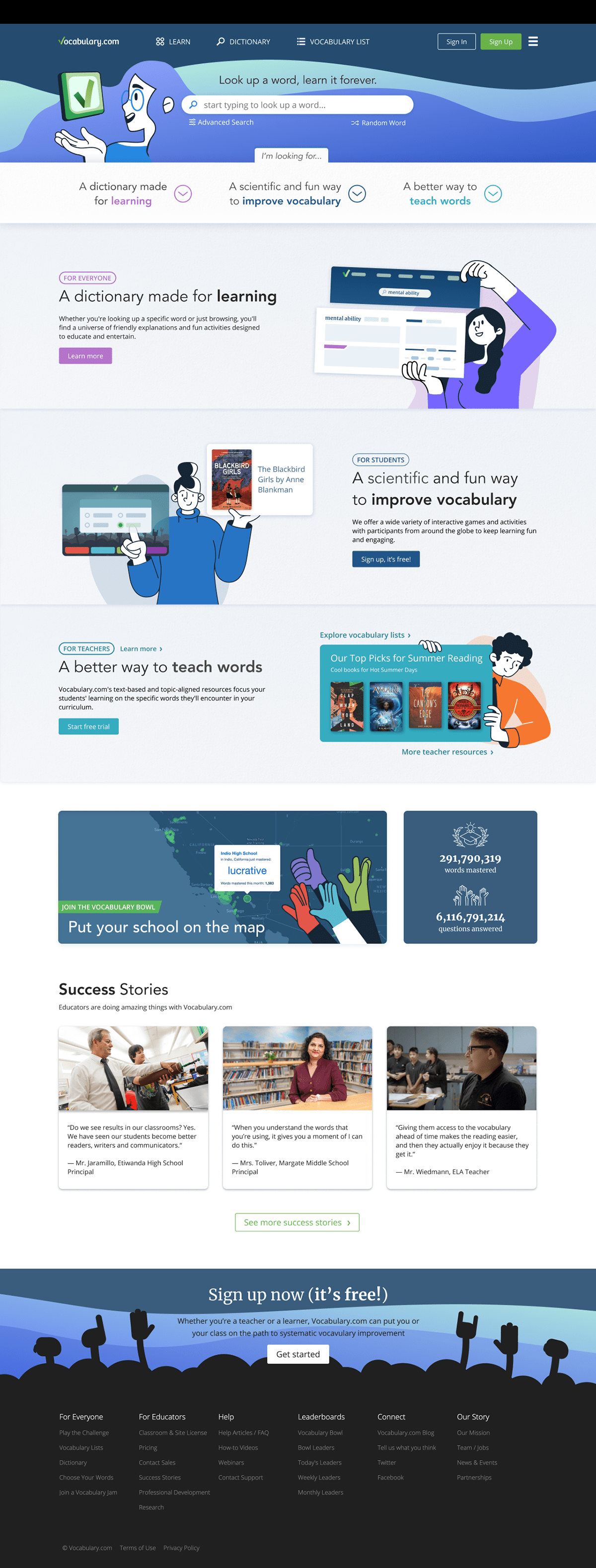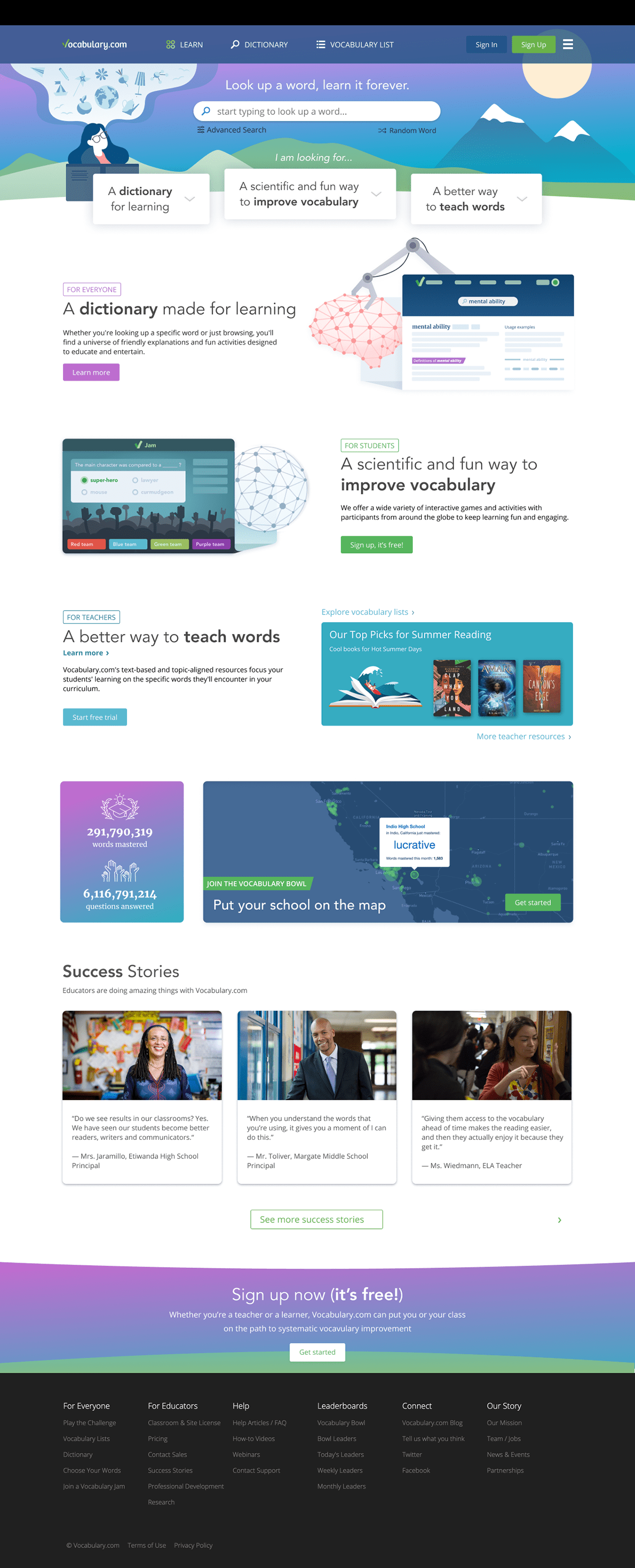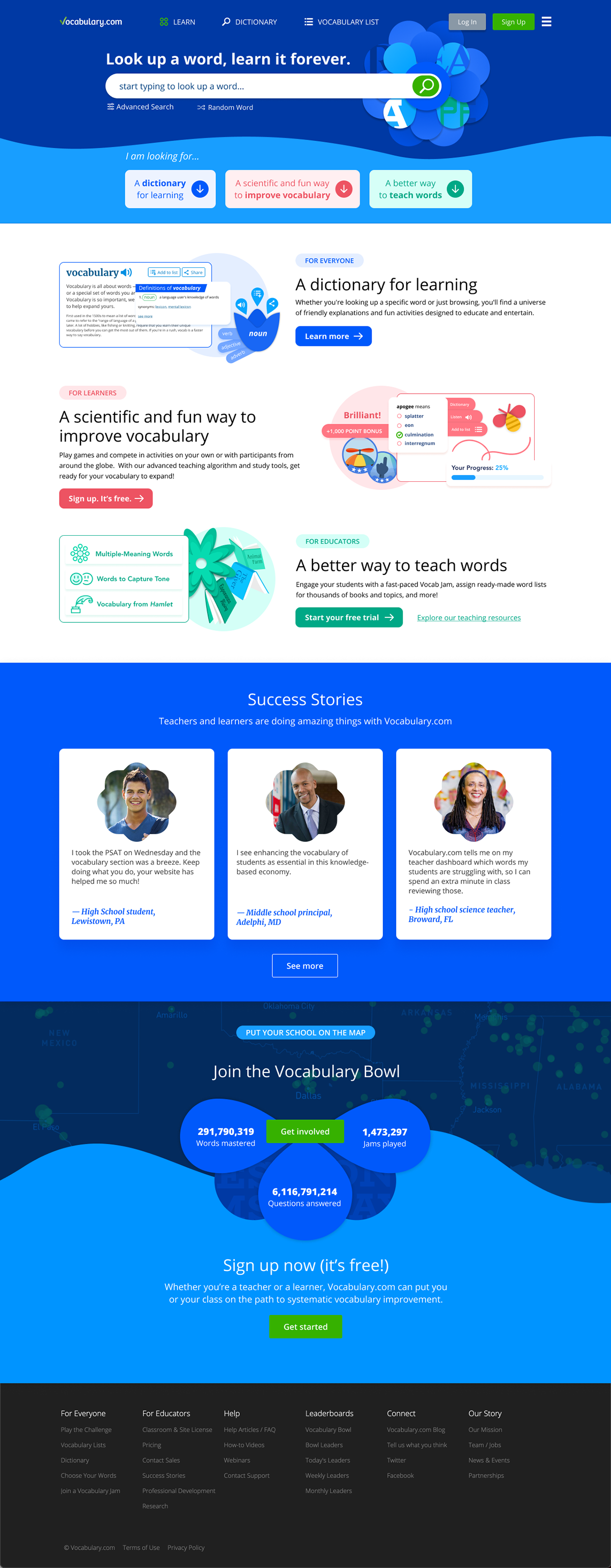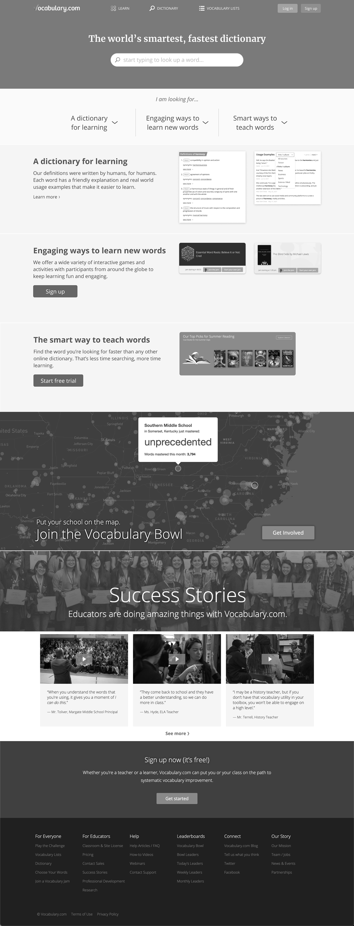After Vocabulary.com was acquired by IXL Learning, I was responsible for leading the restructuring of the site’s landing page to better reflect how users actually engage with the product.