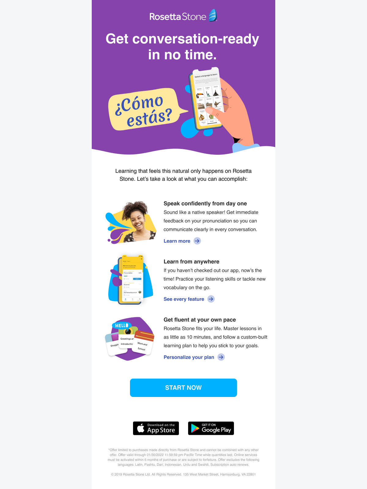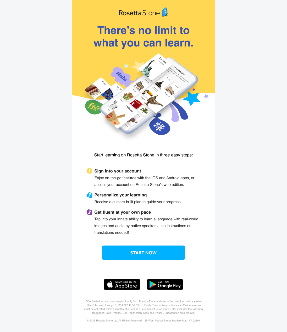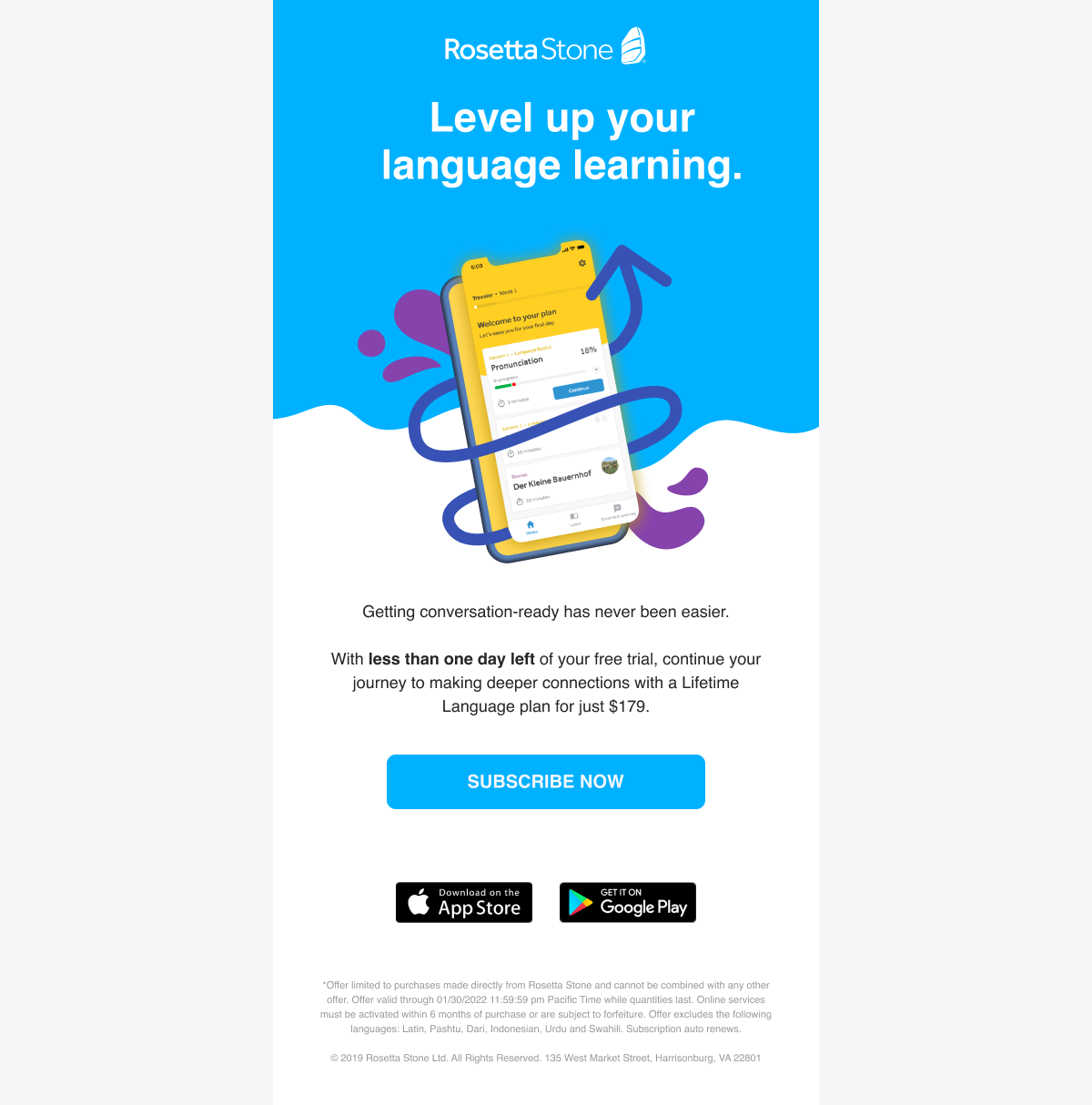 Before leaving IXL Learning, I led the design of a welcome email series for new Rosetta Stone customers entering a free trial.