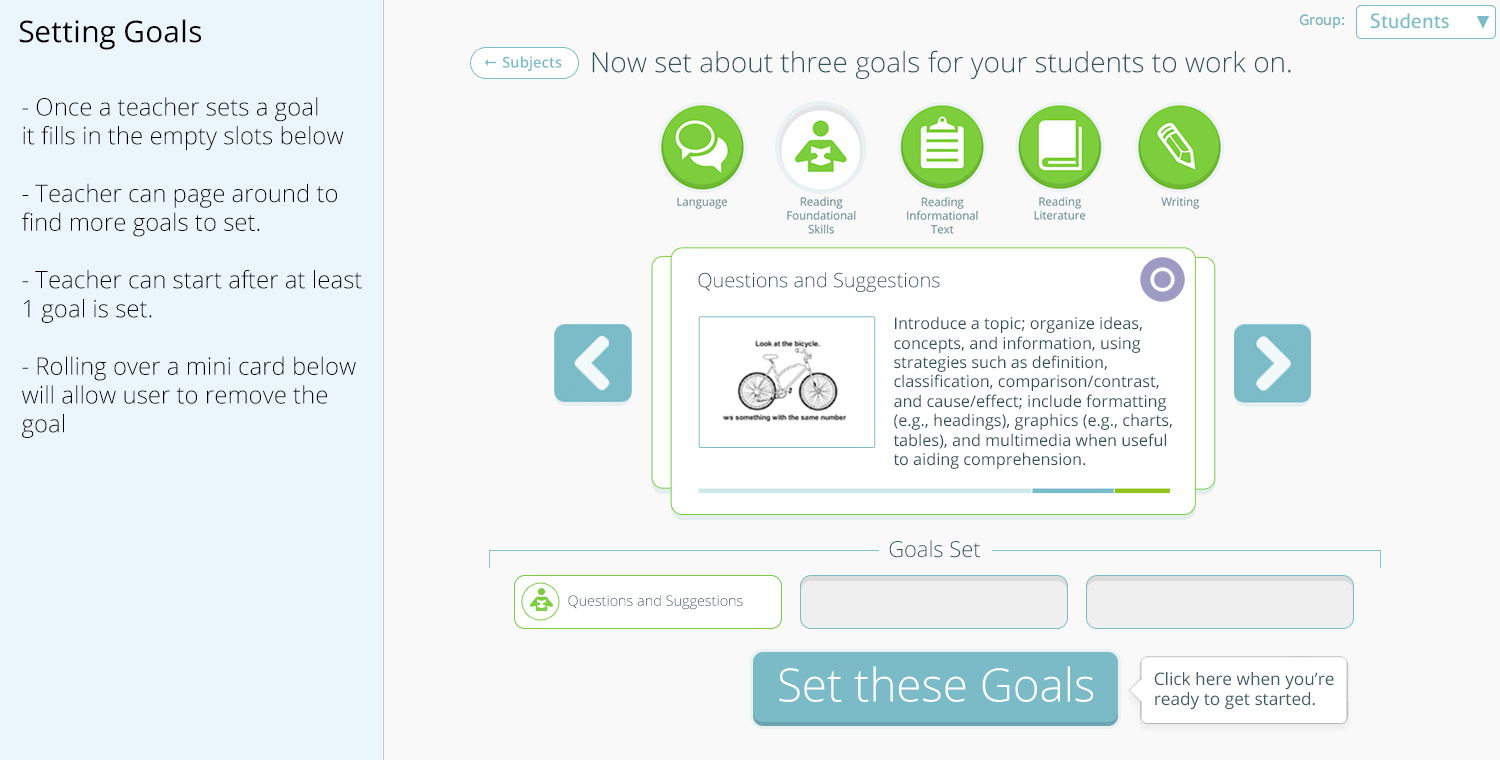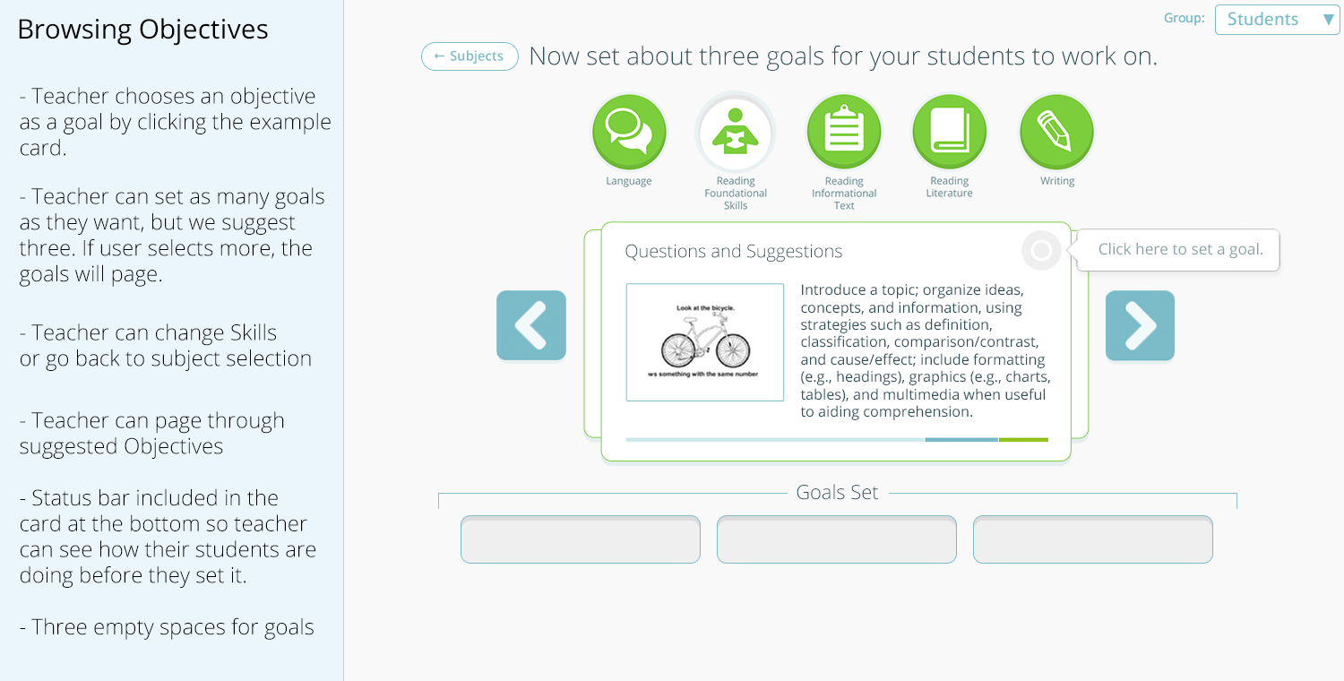 Building upon the feedback received, we expanded the goal-setting functionality by introducing a search feature and a grid view. These additions provided teachers with a wider range of skills to choose from and simplified the selection process.